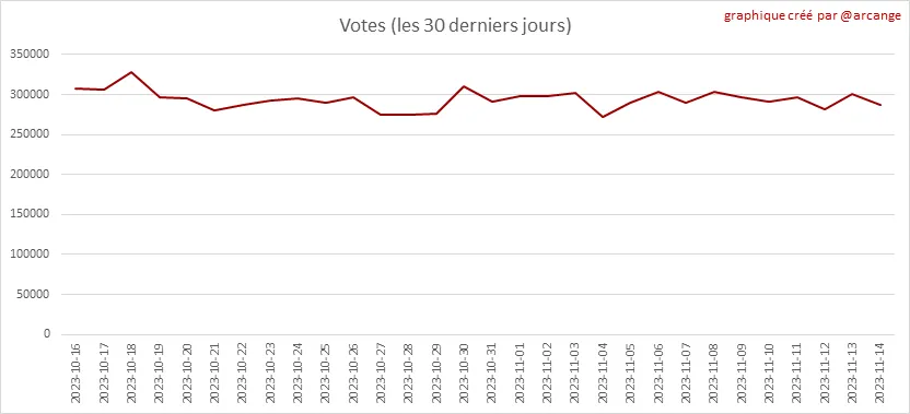 Ces graphiques montrent l'évolution de la curation (votes positifs) depuis la création de la blockchain et pour les 30 derniers jours.