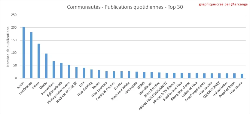 Ces graphiques montrent les communautés les plus actives en termes de publications depuis la leur création et pour le jour passé.