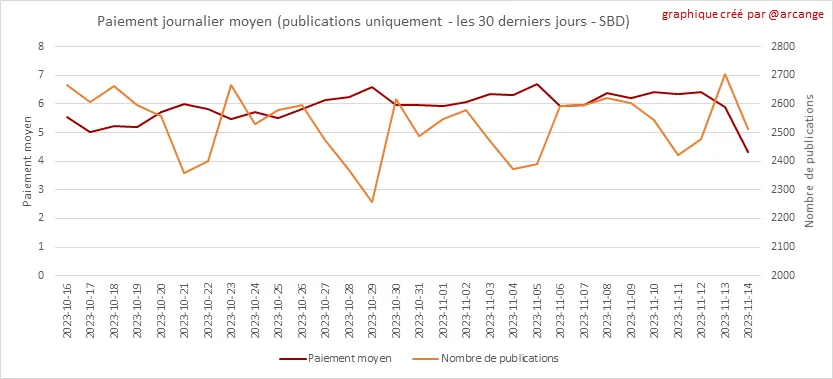Ces graphiques montrent le total des paiements distribués (publications et commentaires) pour chaque jour.