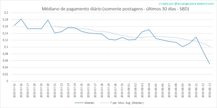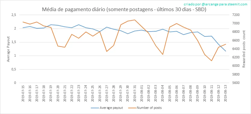 Este gráfico mostra a média de pagamentos por post nos últimos 30 dias.