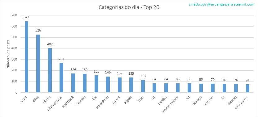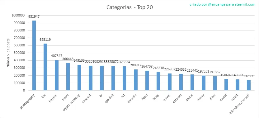 Este gráfico mostra as tag’s mais utilizadas para publicar postagens, desde o inicio do funcionamento da blockchain.
