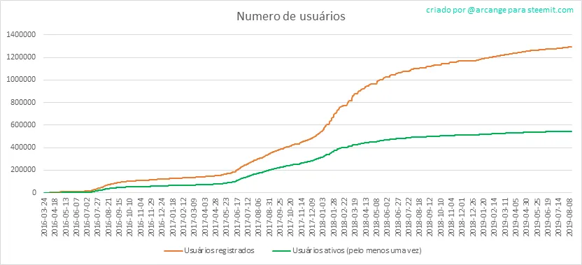 O último gráfico é um resultado mensal dos usuários ativos. Isso permite comparar o valor do blockchain Steem para aqueles que costumam postar em outras redes sociais.