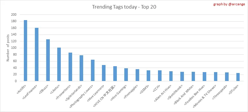 These graphs show which main tags have been the most used for publishing posts for the whole blockchain lifetime and the last day.