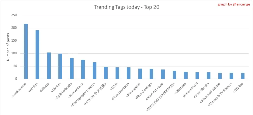 These graphs show which main tags have been the most used for publishing posts for the whole blockchain lifetime and the last day.