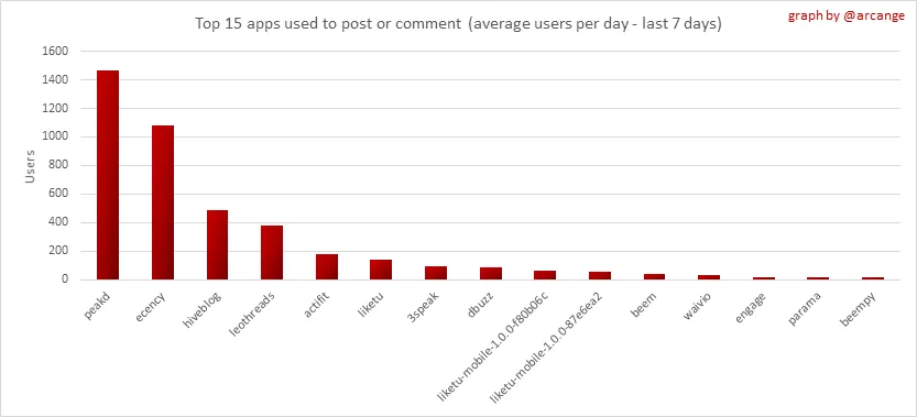 This graph shows which applications are most used to publish posts and comments. Please note that the same user can use several different applications.