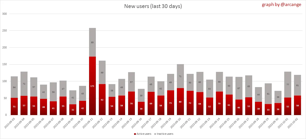 The grey part of each column indicates how many accounts are inactive (those who have not posted, commented or voted the last 30 days).
