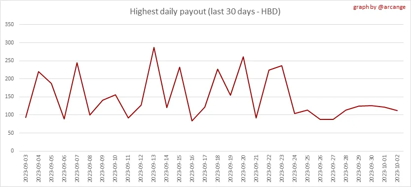 This graph shows the highest reward paid on a post (or comment) for the last 30 days.
