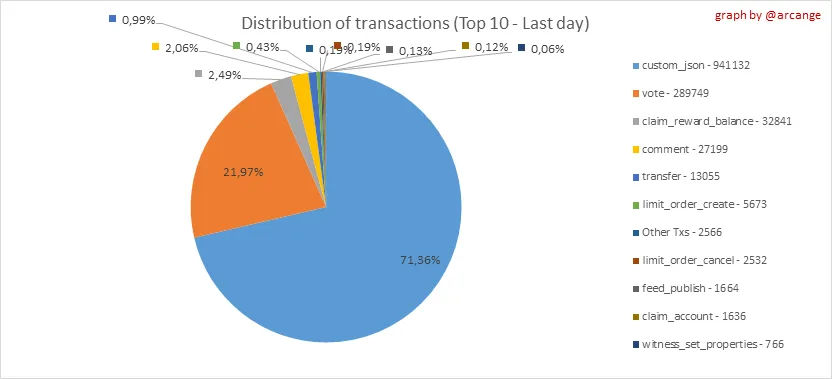 This graph shows the distribution of the top 10 types of transactions by number of operations performed on the blockchain.