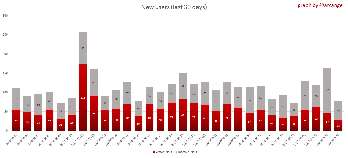 The grey part of each column indicates how many accounts are inactive (those who have not posted, commented or voted the last 30 days).