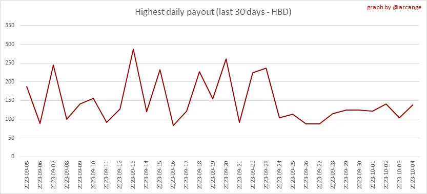 This graph shows the highest reward paid on a post (or comment) for the last 30 days.