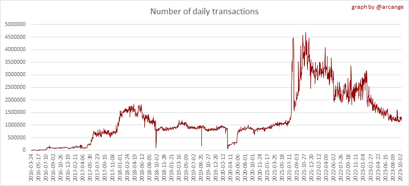 These graphs show the number of transactions per day, and the highest number of transactions per block, the average number of transactions per block, and the number of transactions per block for the last 48 hours. This gives you an idea of the whole activity on the blockchain.