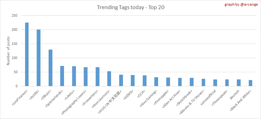 These graphs show which main tags have been the most used for publishing posts for the whole blockchain lifetime and the last day.