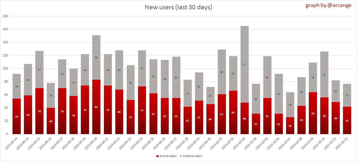 The grey part of each column indicates how many accounts are inactive (those who have not posted, commented or voted the last 30 days).