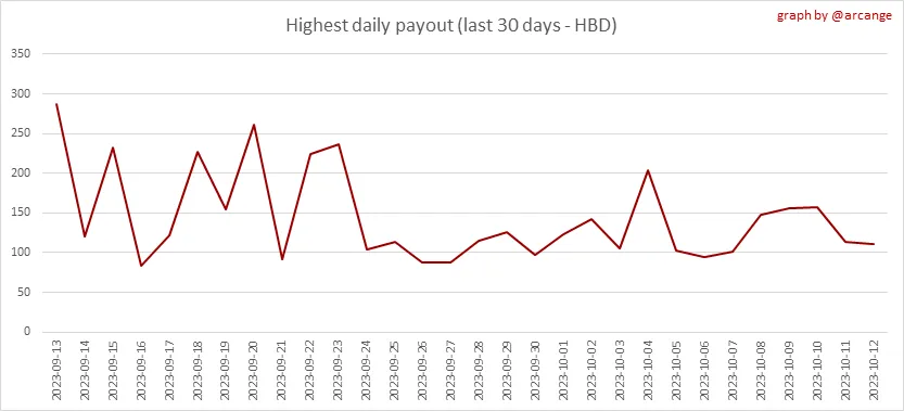 This graph shows the highest reward paid on a post (or comment) for the last 30 days.
