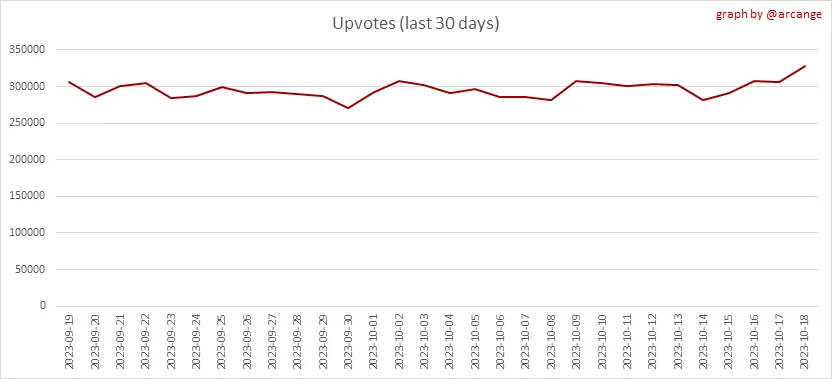 These graphs show the evolution of curation (upvotes) for the whole blockchain lifetime and the last 30 days.