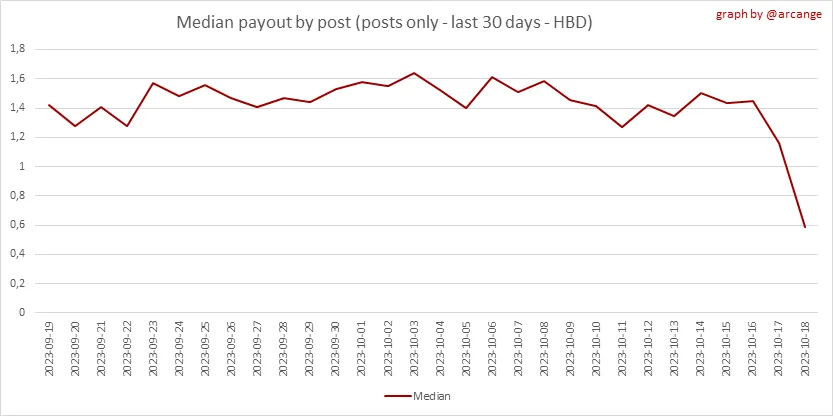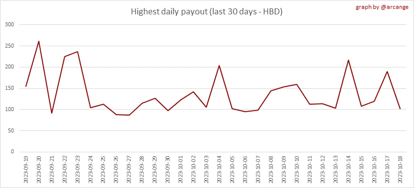 This graph shows the highest reward paid on a post (or comment) for the last 30 days.