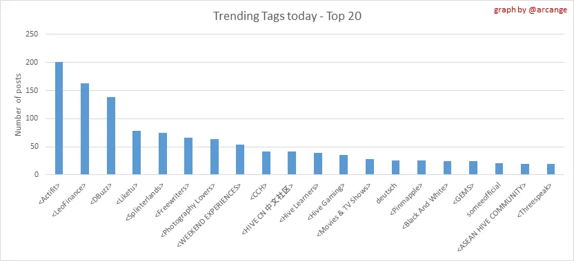 These graphs show which main tags have been the most used for publishing posts for the whole blockchain lifetime and the last day.
