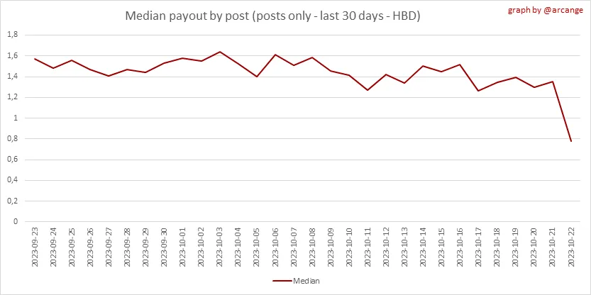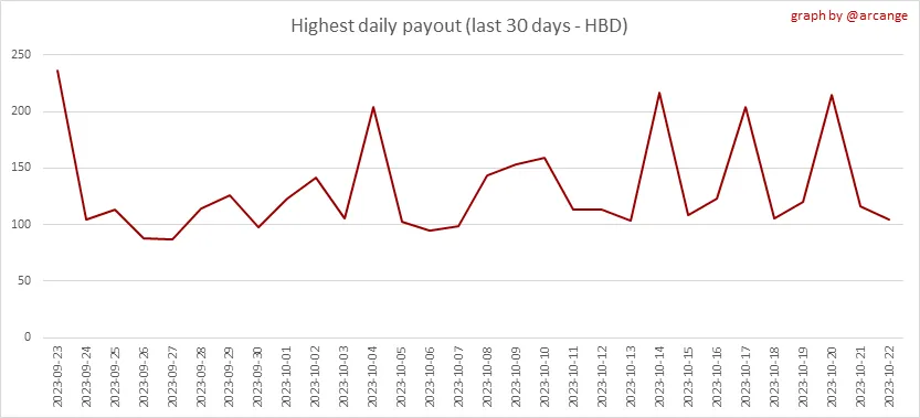 This graph shows the highest reward paid on a post (or comment) for the last 30 days.