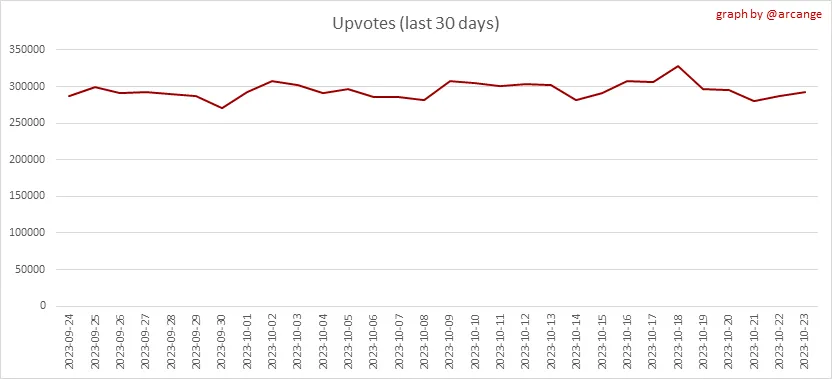 These graphs show the evolution of curation (upvotes) for the whole blockchain lifetime and the last 30 days.