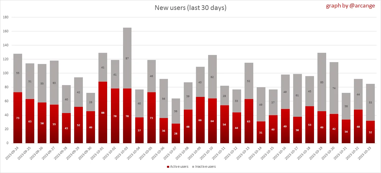 The grey part of each column indicates how many accounts are inactive (those who have not posted, commented or voted the last 30 days).