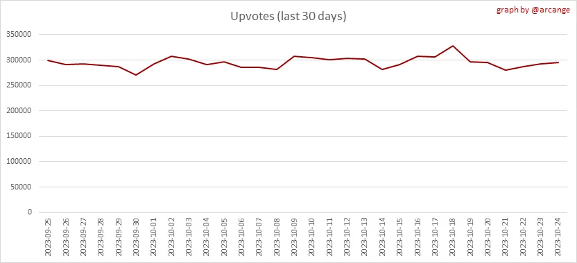 These graphs show the evolution of curation (upvotes) for the whole blockchain lifetime and the last 30 days.
