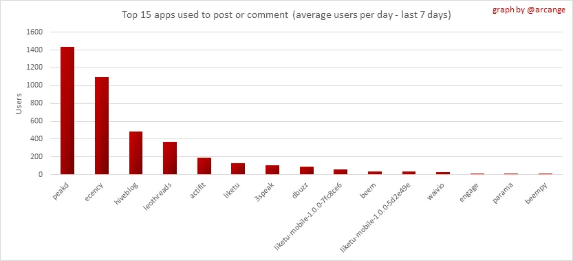 This graph shows which applications are most used to publish posts and comments. Please note that the same user can use several different applications.