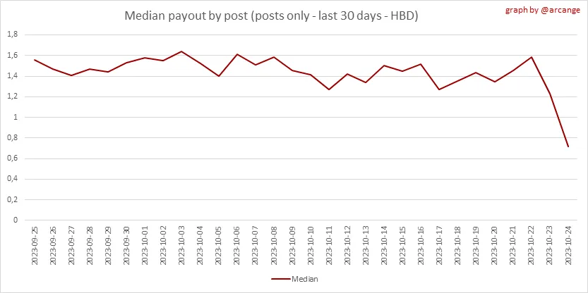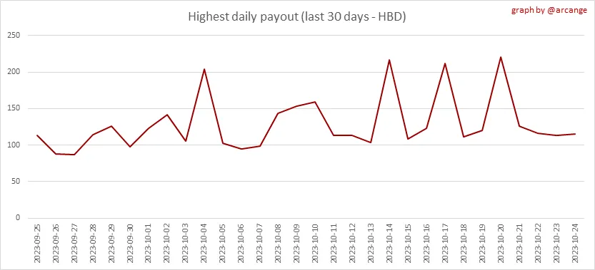 This graph shows the highest reward paid on a post (or comment) for the last 30 days.