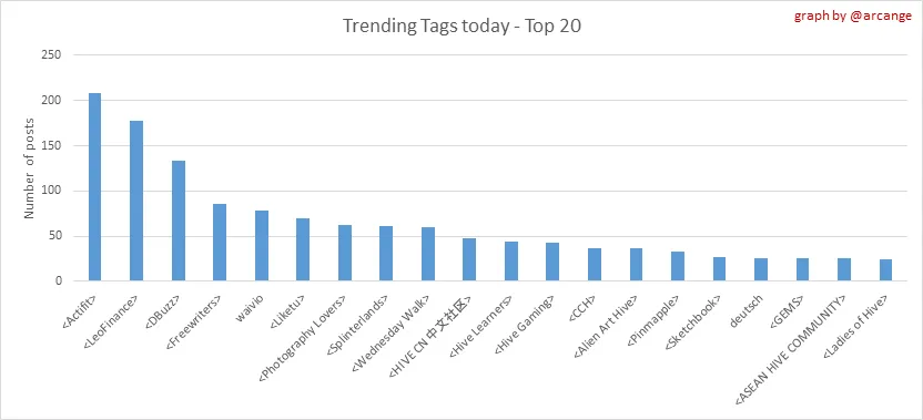 These graphs show which main tags have been the most used for publishing posts for the whole blockchain lifetime and the last day.