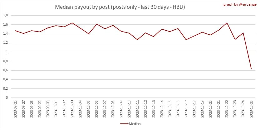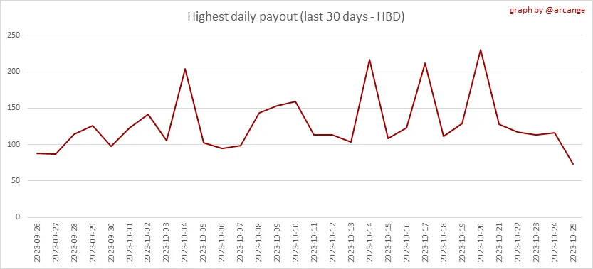 This graph shows the highest reward paid on a post (or comment) for the last 30 days.