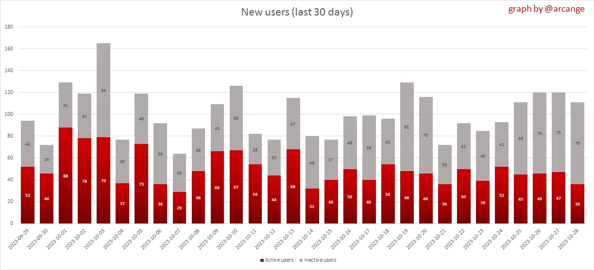 The grey part of each column indicates how many accounts are inactive (those who have not posted, commented or voted the last 30 days).