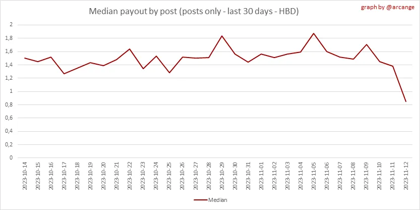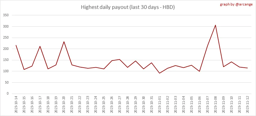 This graph shows the highest reward paid on a post (or comment) for the last 30 days.