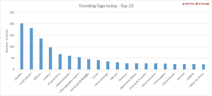 These graphs show which main tags have been the most used for publishing posts for the whole blockchain lifetime and the last day.