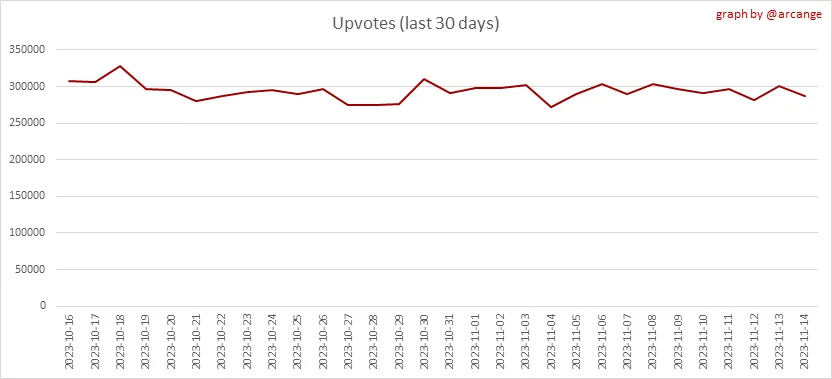 These graphs show the evolution of curation (upvotes) for the whole blockchain lifetime and the last 30 days.