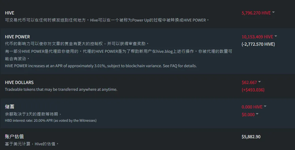 OK, 到這裡, 基本上成功引起對方注意. 但我也醜話放前頭, 哥/姐, 這玩意不是賺快錢的, 我是花了幾年時間, 一步一步在幣圈世界建立我的倉位的, 這時候晒一下Hive wallet的倉位, 開始講我的歷史.回我的幣圈五年計劃.