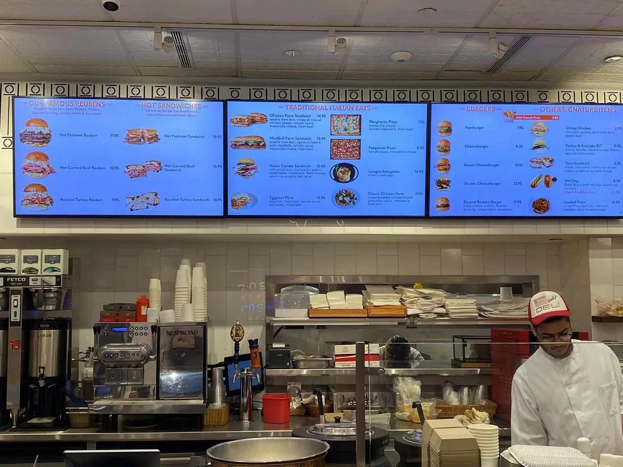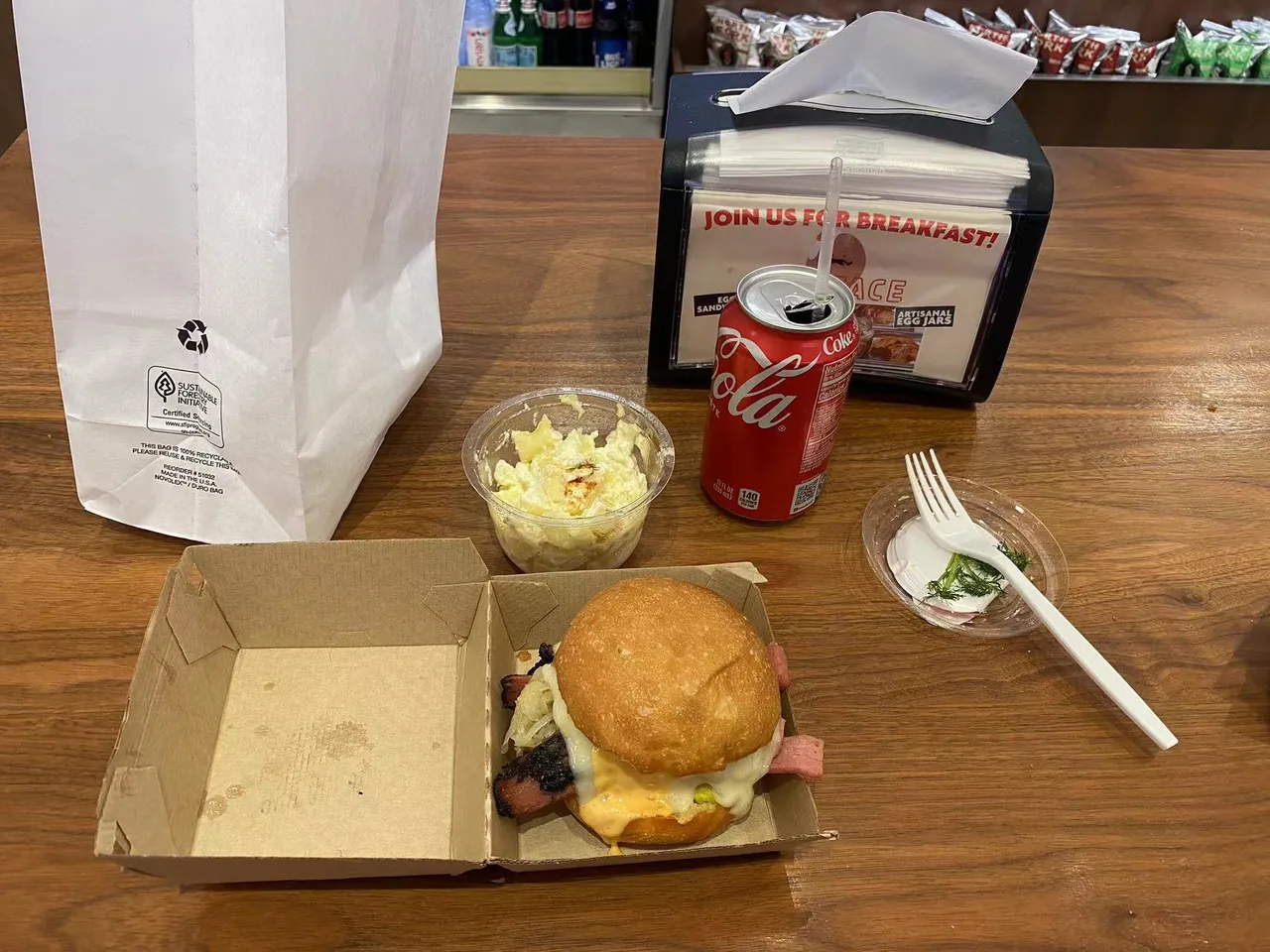 走到去之後, 發現全家Deli 就我自己一個人, 我剛進去的時候, 有對情侶剛吃完離開, 所以一個人吃出包場的感覺了囉. 我自己就點了個 Hot Pastrami Reuben加一罐可樂, 加起來16刀左右? 隔了一個月, 我已經忘記了. 反正都要回去了, 身上的美金不怕不夠花了, 那陣子還有220左右. 吃一頓30刀的也綽綽有餘了.