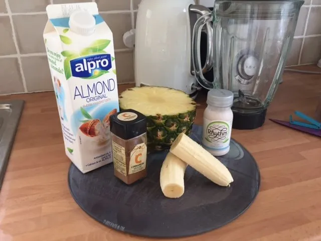 Banana, Almond Milk, Pineapple, Cinnamon and Pressed Coconut