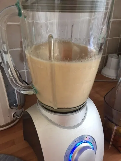 Add all the ingredients to the mixer as usual and blend.