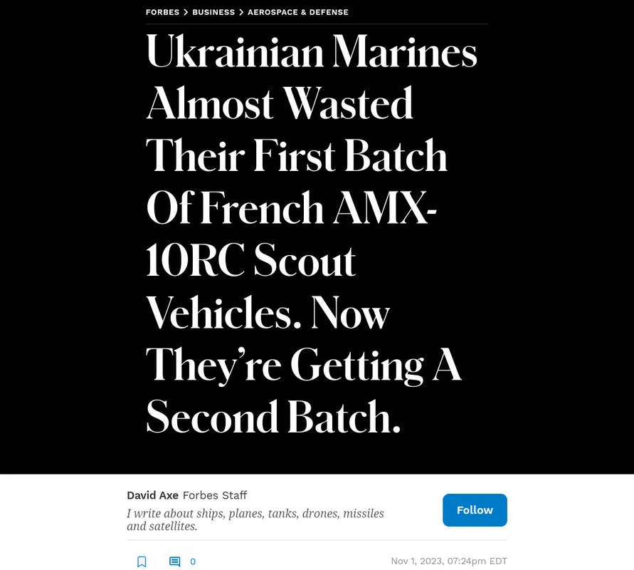 https://www.forbes.com/sites/davidaxe/2023/11/01/ukrainian-marines-almost-wasted-their-first-batch-of-french-amx-10rc-scout-vehicles-now-theyre-getting-a-second-batch