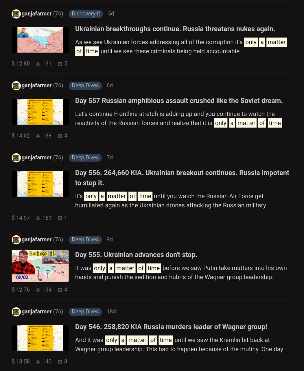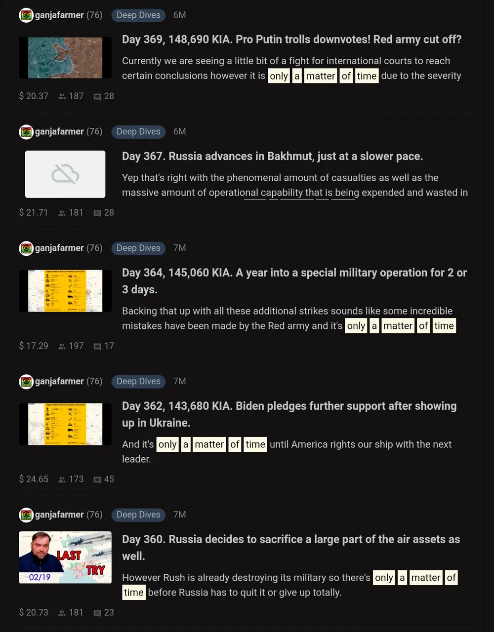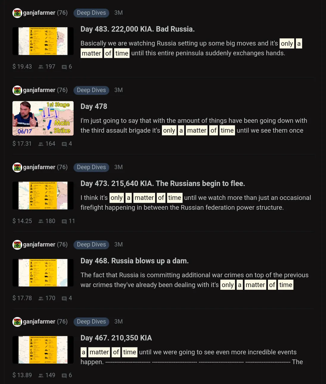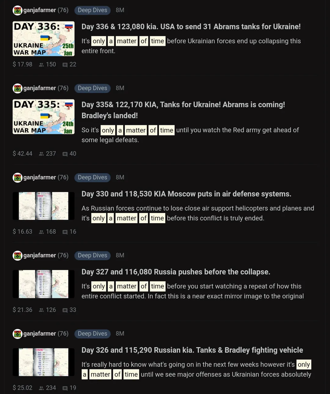 Lol no irony as the Western ammunition are running out and it's 200 billion proxy failed while BRICS more than doubled in size and the dollar keeps losing reserve share while New York Times claims Russia captured more than twice the territory during this year.