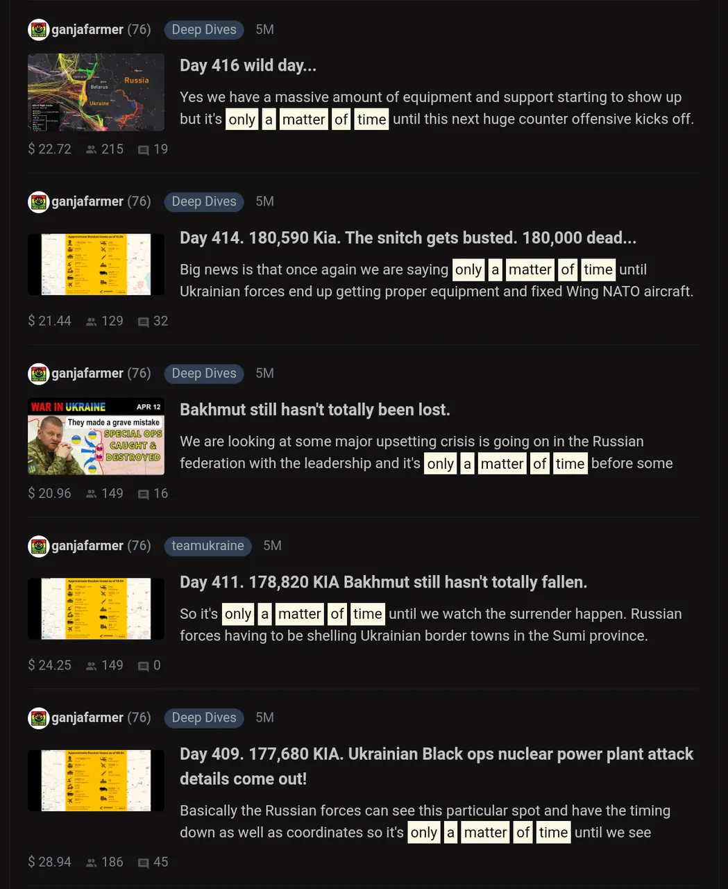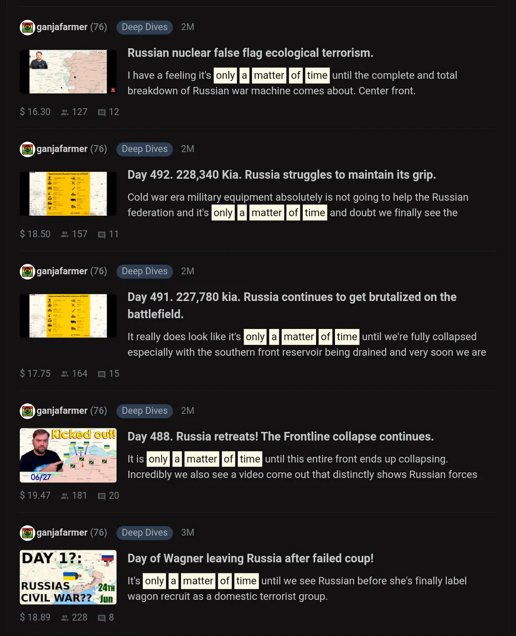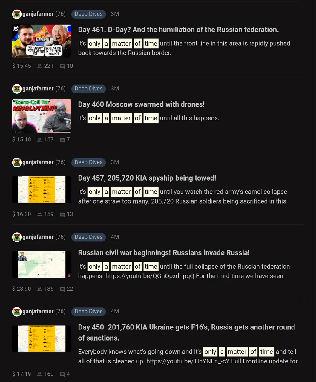 Lol no irony as the Western ammunition are running out and it's 200 billion proxy failed while BRICS more than doubled in size and the dollar keeps losing reserve share while New York Times claims Russia captured more than twice the territory during this year.
