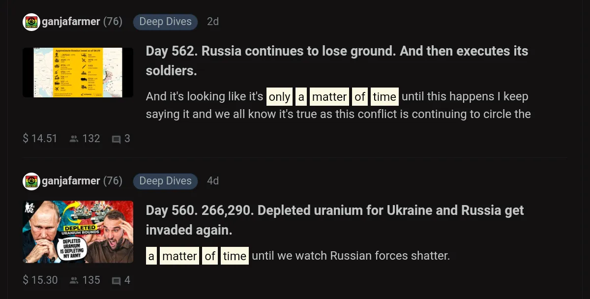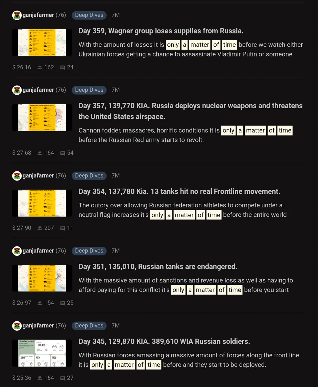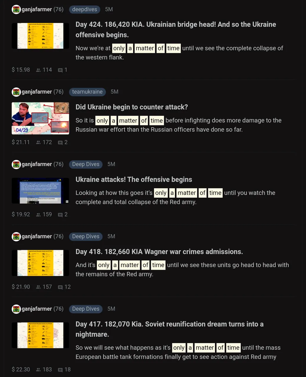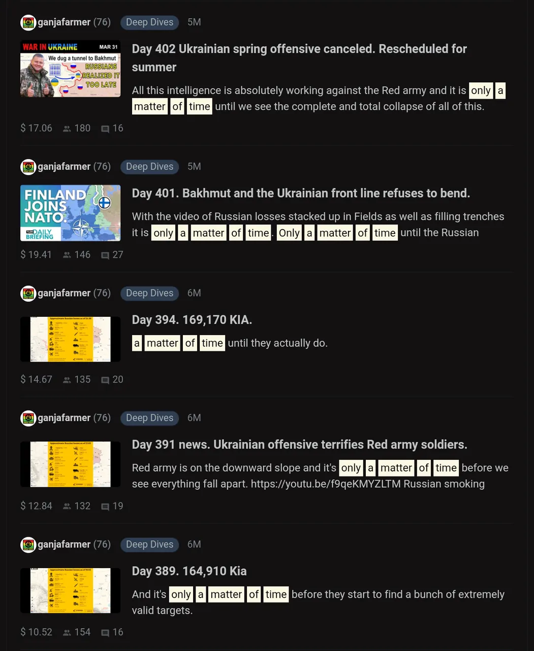 Lol no irony as the Western ammunition are running out and it's 200 billion proxy failed while BRICS more than doubled in size and the dollar keeps losing reserve share while New York Times claims Russia captured more than twice the territory during this year.