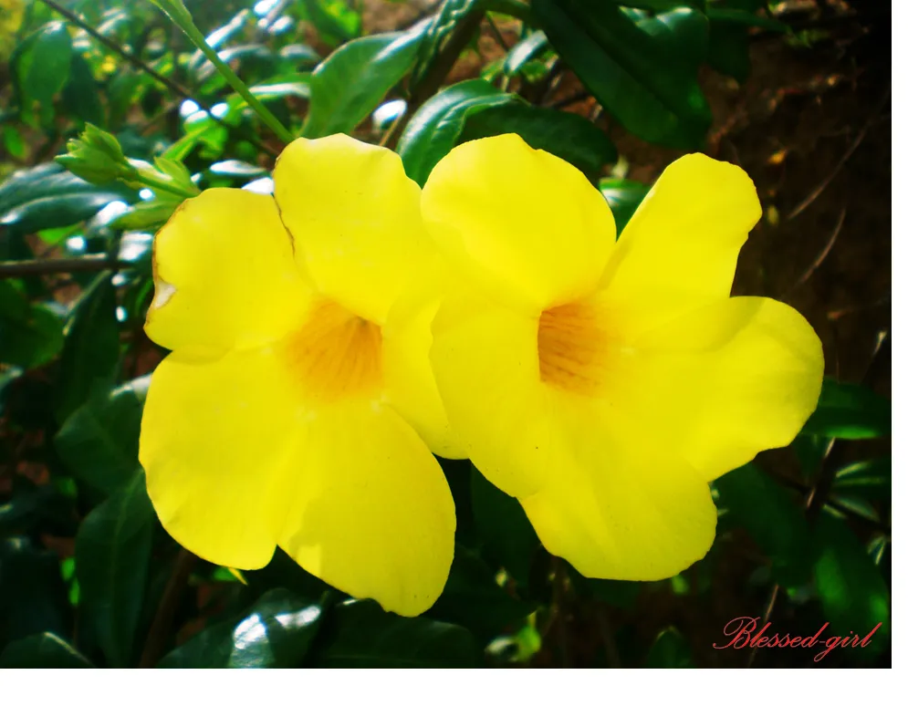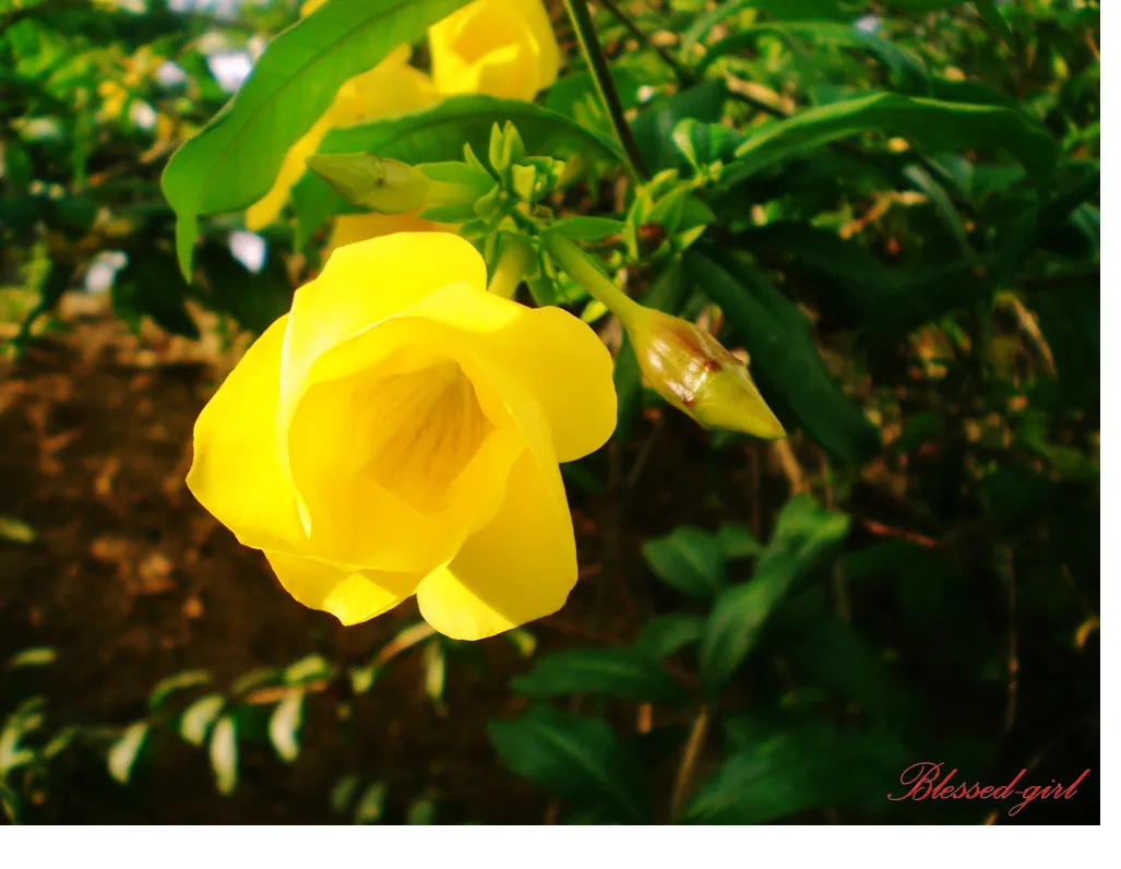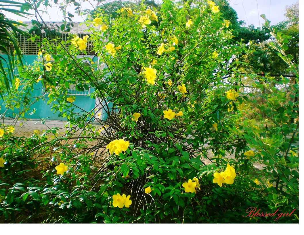 Esta flor se llama Allamanda cathartica o Trompeta Amarilla. Crece en una planta que puede alcanzar grandes dimensiones. Las flores son medianas y tienen un olor muy rico, perfuma toda el área donde se encuentra.