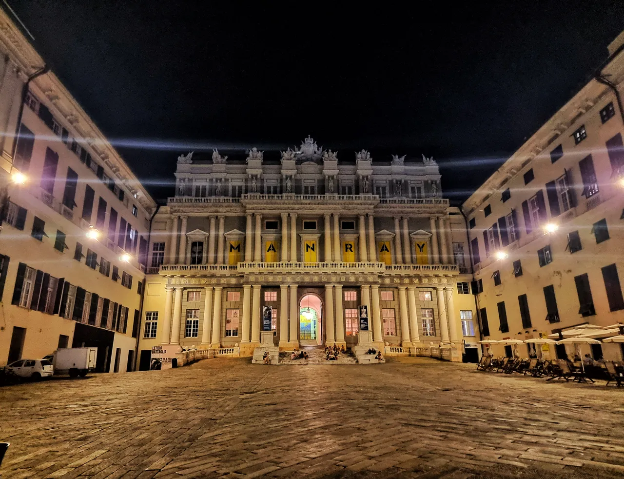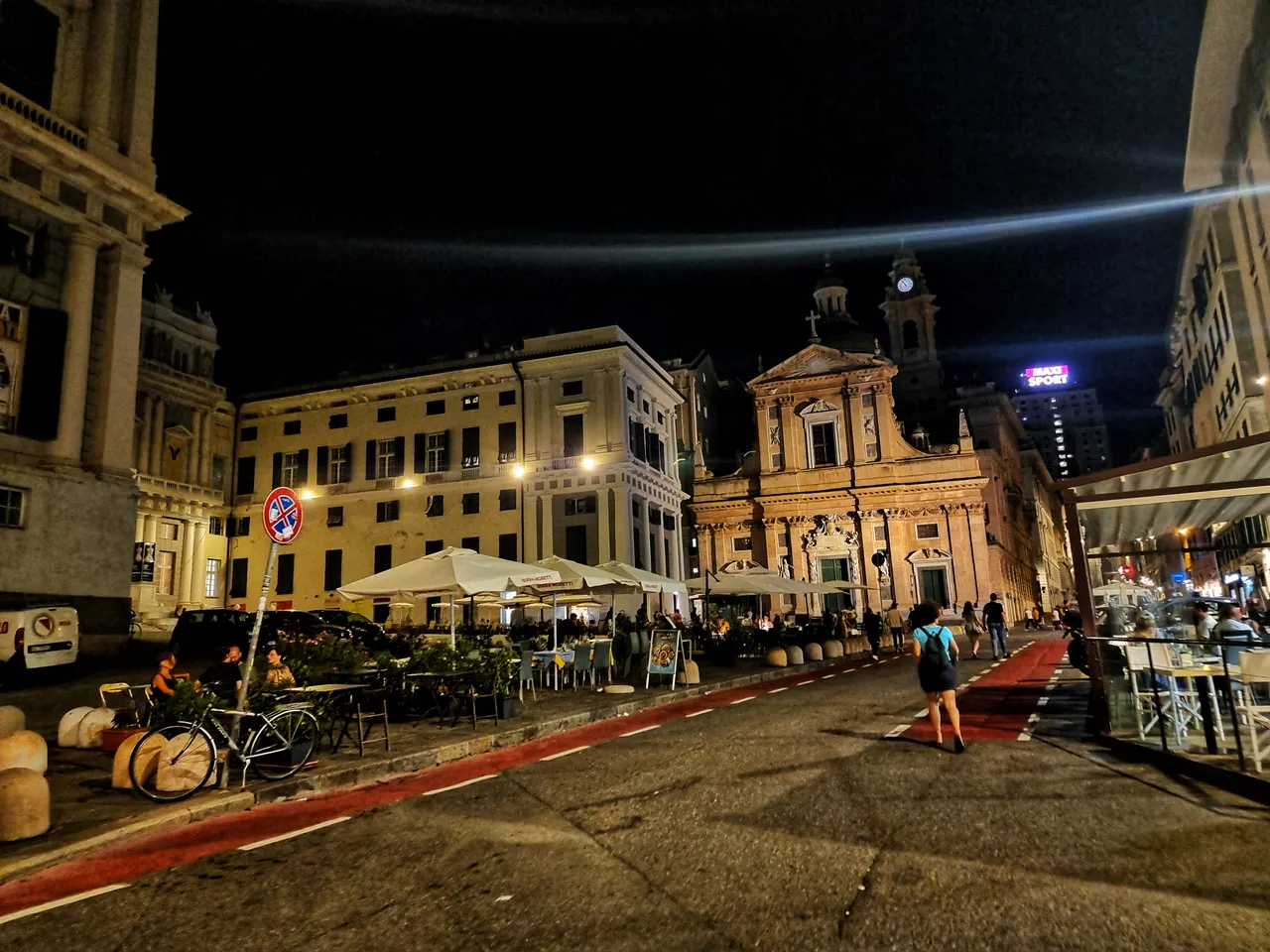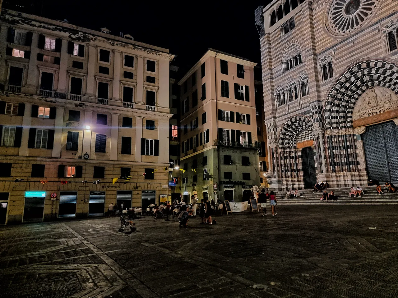 The Genoa Doge's palace is now a humble cultural center, with chairs and tables from cafes stepping on its toes, and people sitting on its stairs. I can imagine it feels incredible sitting and having a meal with the church and the mansion in your view. Too bad, it is much harder during the day to get that much comfort.