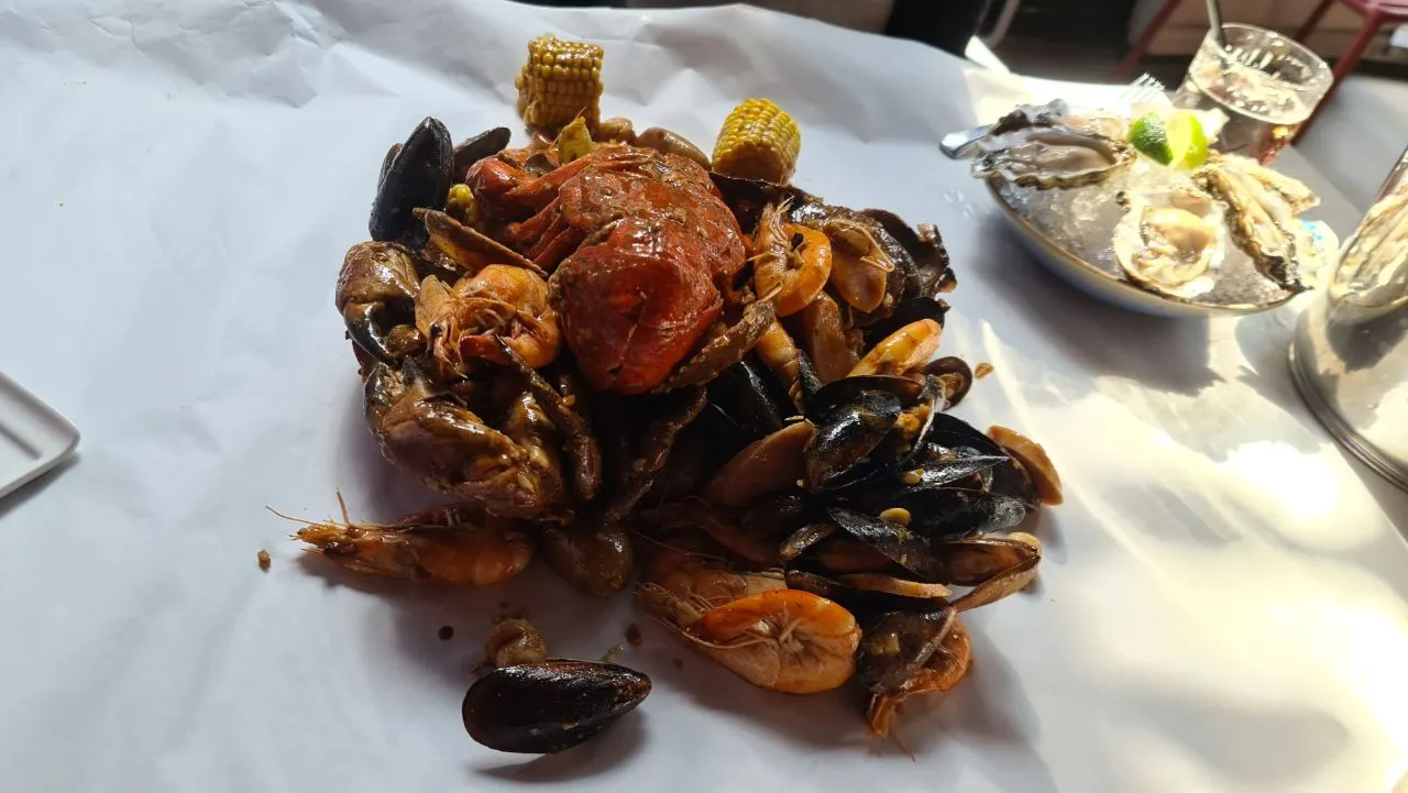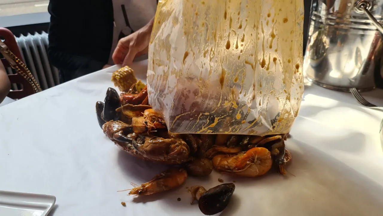 The boil we chose was with a whole lobster, north sea crab, jumbo Greenshell Mussel and shrimps. I don't eat spicy so we collectively decided to go with mild spice. Which directly translates to extremely hot for me.