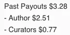 이면 $3.28을 저자:큐레이터=75:25로 나눈 저자몫 $2.51의 보상을 다시 50:50으로 나눠서 원래는 $1.255 스달과 $1.255 스달의 가치에 해당하는 스팀파워를 받아야 하지만 스달 발행률이 1%라 실제 $0.012만 나온 것을 아래에서 확인하실 수 있습니다.