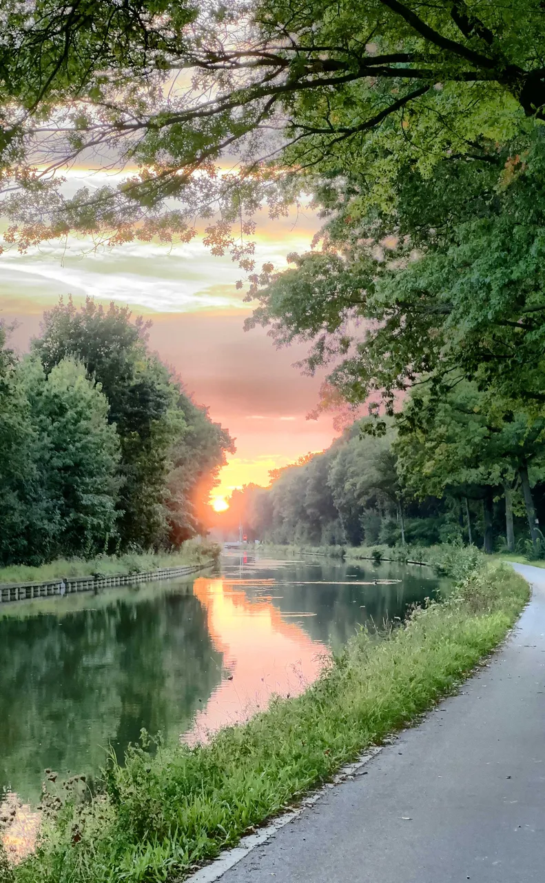 βοΈ And now, as the sun bids adieu, I'm gearing up for my evening stroll by the tranquil canal, with the sky putting on a stunning show! π The fiery hues of the setting sun paint a mesmerizing canvas above the water, creating a breathtaking panorama that's impossible to ignore. I find myself lost in the beauty of this natural masterpiece, capturing it not just in my camera but in my heart.