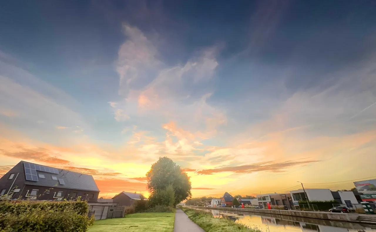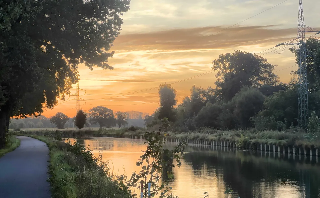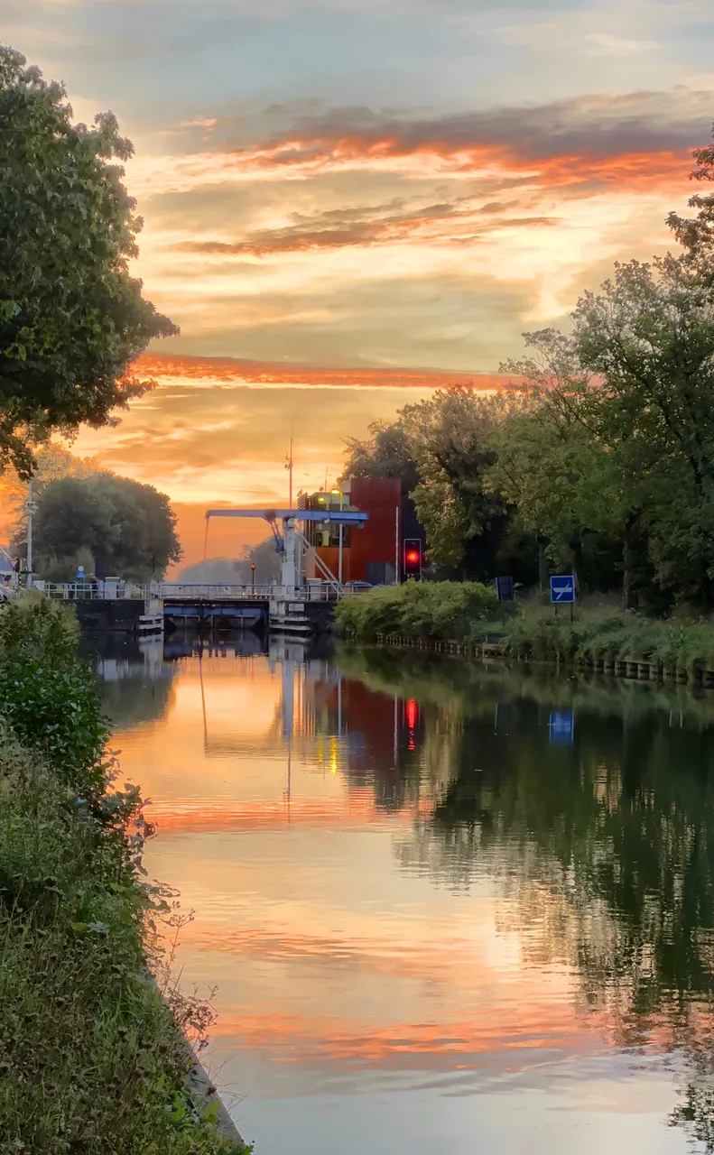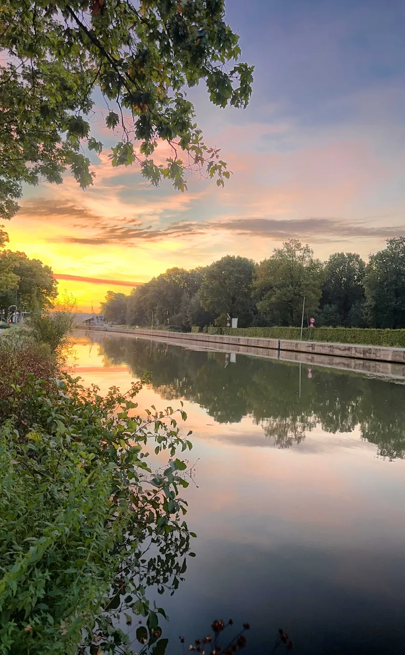 Today was one of those days that perfectly aligned my love for nature and my fitness goals. The day commenced with an early morning walk by the canal. As the horizon painted a symphony of colors announcing the day’s arrival, I managed to capture the essence of that sunrise, a moment of pure serenity. Amidst the usual verdant greenery, a solitary red leaf caught my attention, standing out boldly - a testament to nature’s quiet yet profound transitions.