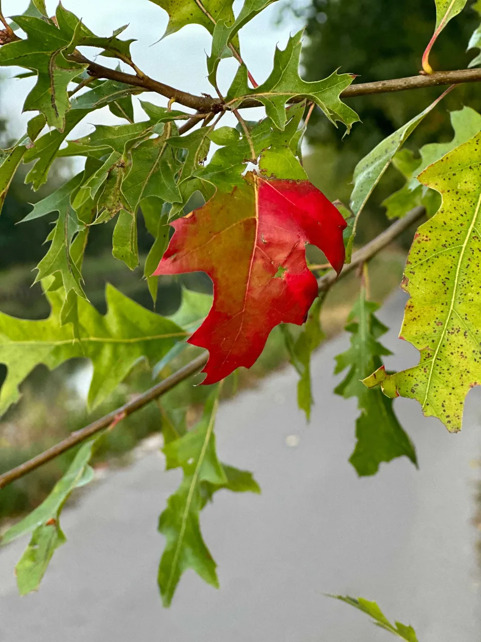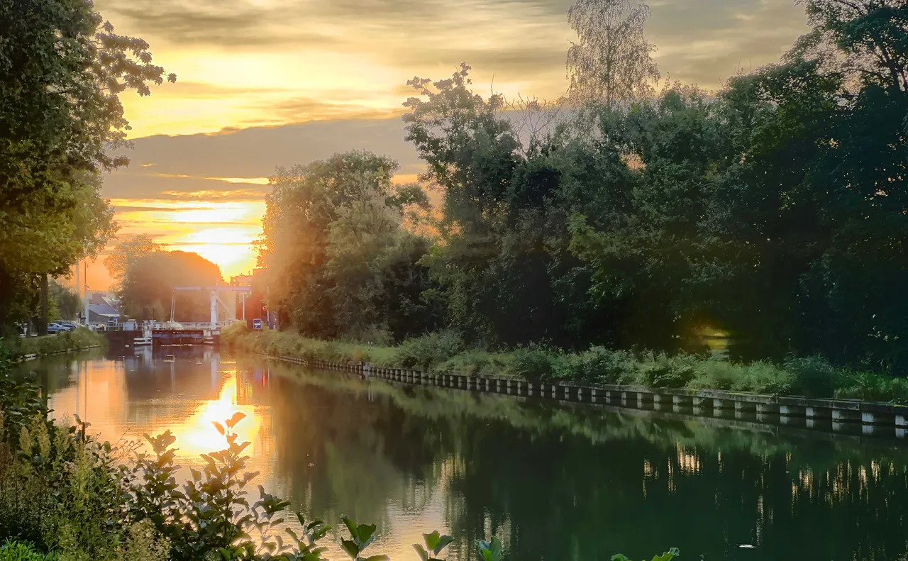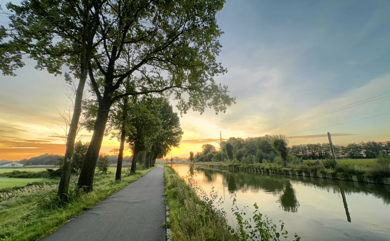 Today was one of those days that perfectly aligned my love for nature and my fitness goals. The day commenced with an early morning walk by the canal. As the horizon painted a symphony of colors announcing the day’s arrival, I managed to capture the essence of that sunrise, a moment of pure serenity. Amidst the usual verdant greenery, a solitary red leaf caught my attention, standing out boldly - a testament to nature’s quiet yet profound transitions.
