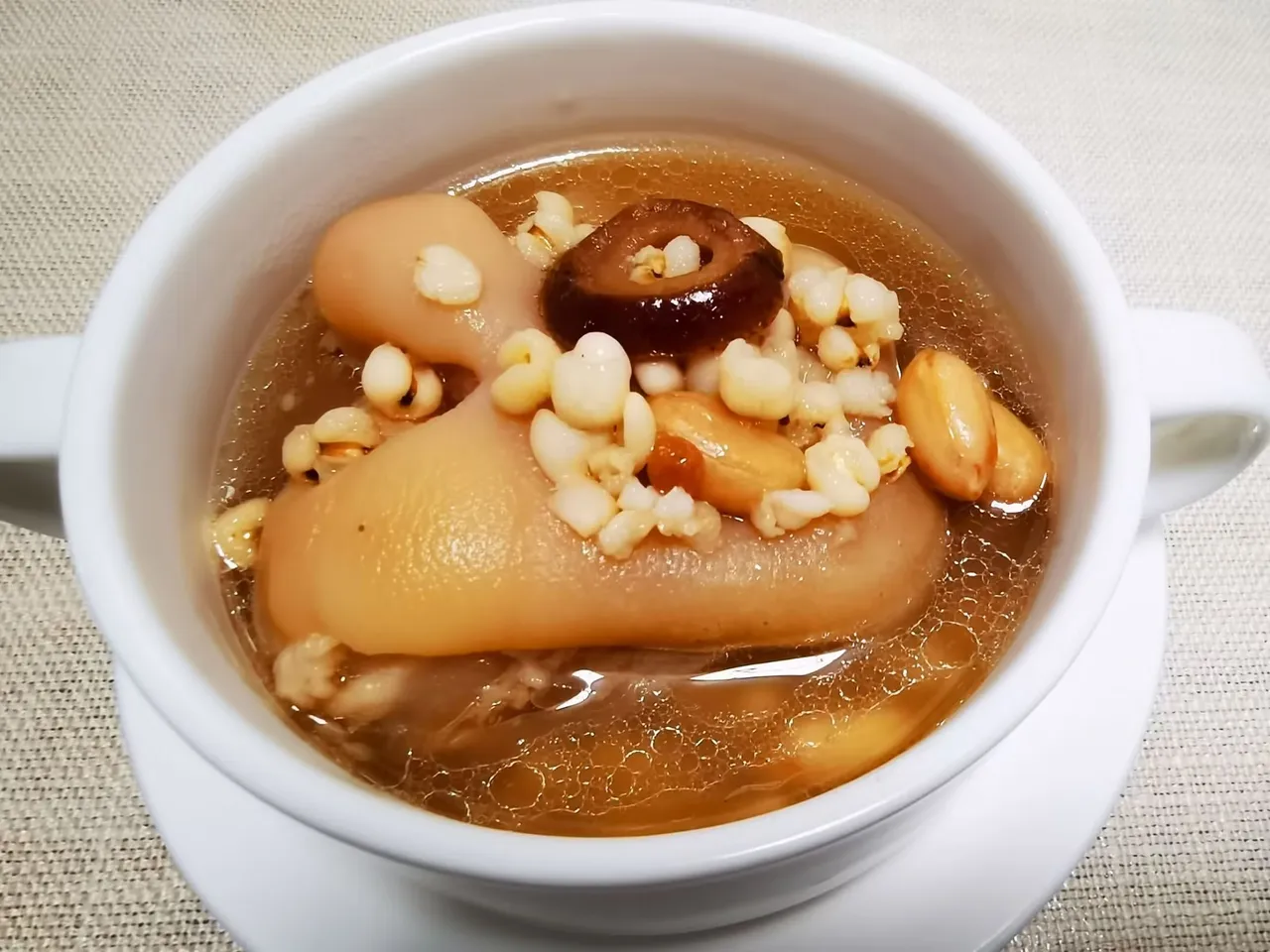 更可贵的是猪蹄可以和任意食材搭配都能起到一个非常好的效果,今天分享一个猪蹄薏米汤,是我喜欢的一款,如果你皮肤干燥,没有光泽,那就试试这个猪蹄薏米汤,因为猪蹄富含胶原蛋白,而薏米又是祛湿的佳品,放在一起吃,绝对是美容养颜而且还可以强筋壮骨。