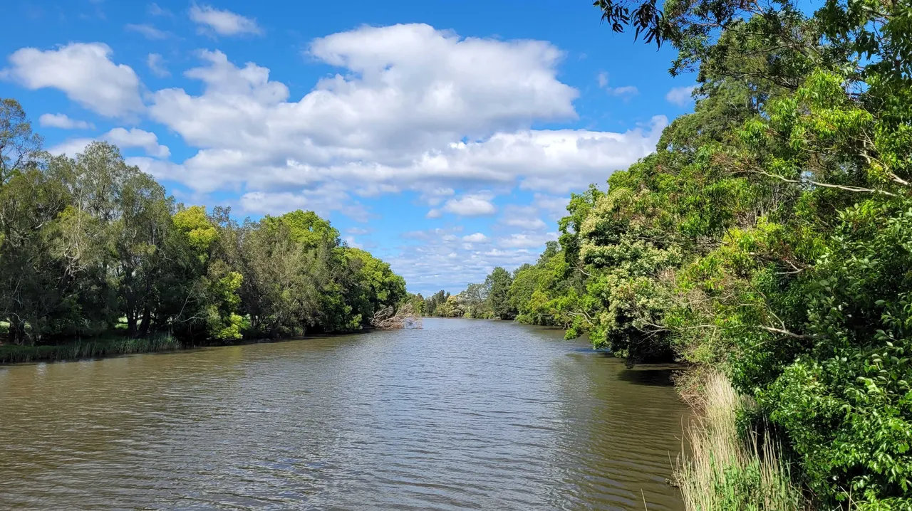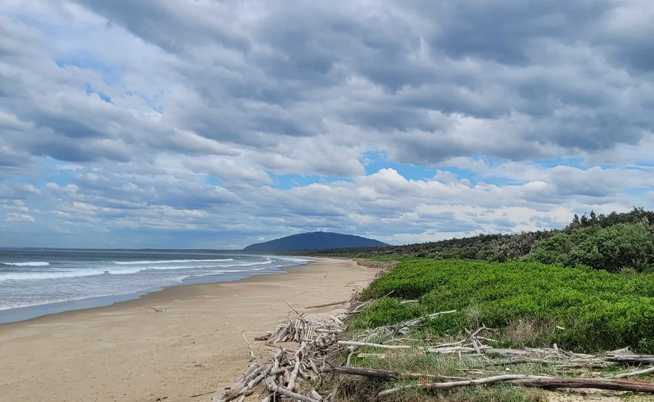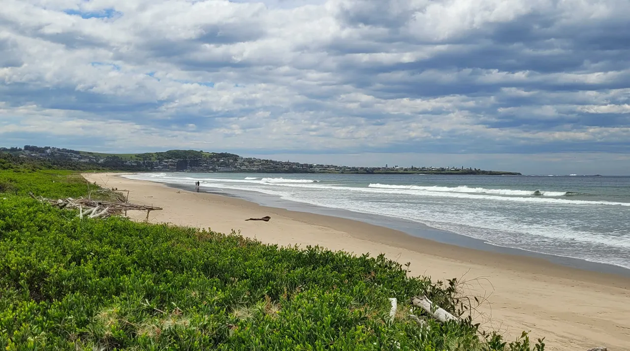 Crossed Broughton Creek on the way out of Berry - not as brown as the crossing lower down two days back. Rode up Gerroa Rd to walk the top end of the path into Seven Mile Beach NP not walked before - view of the beach toward Gerroa